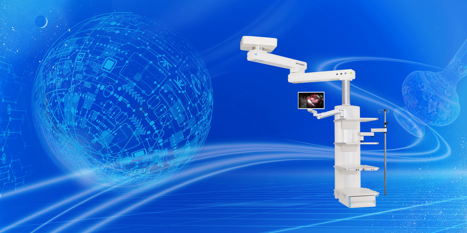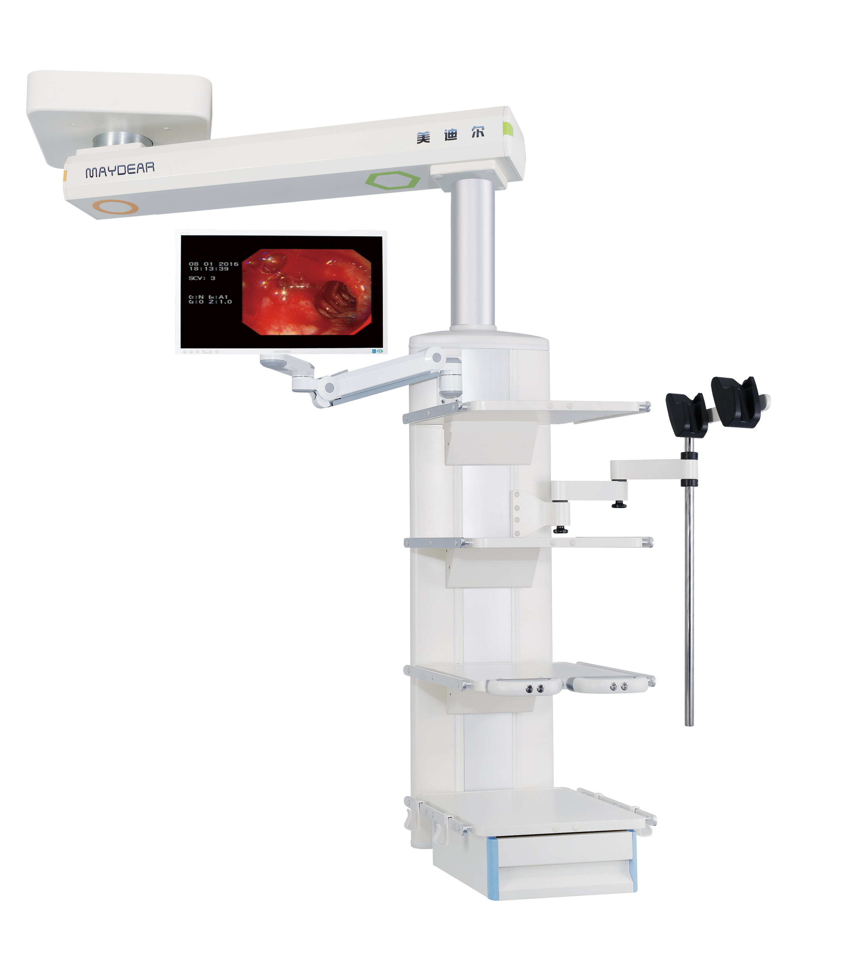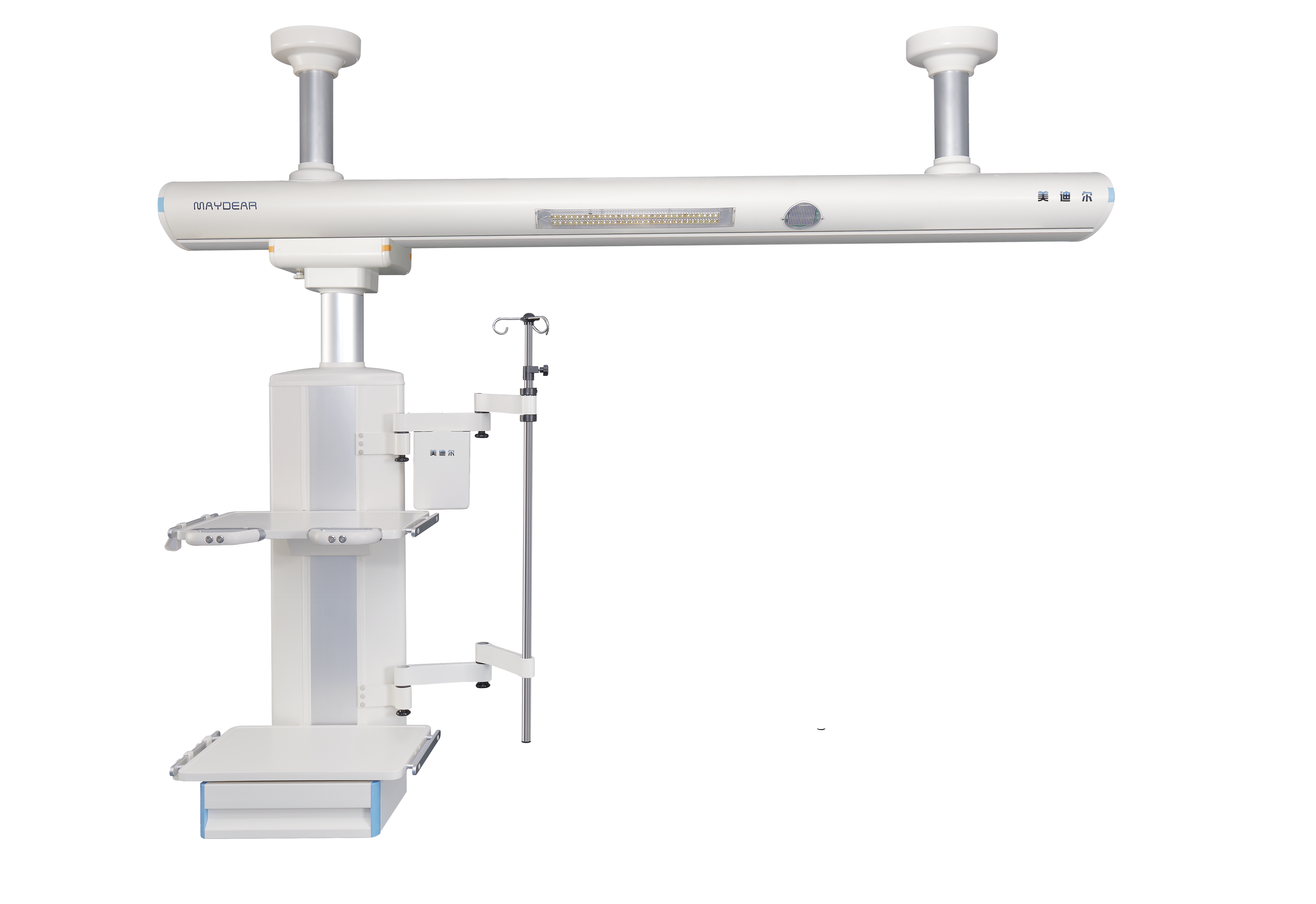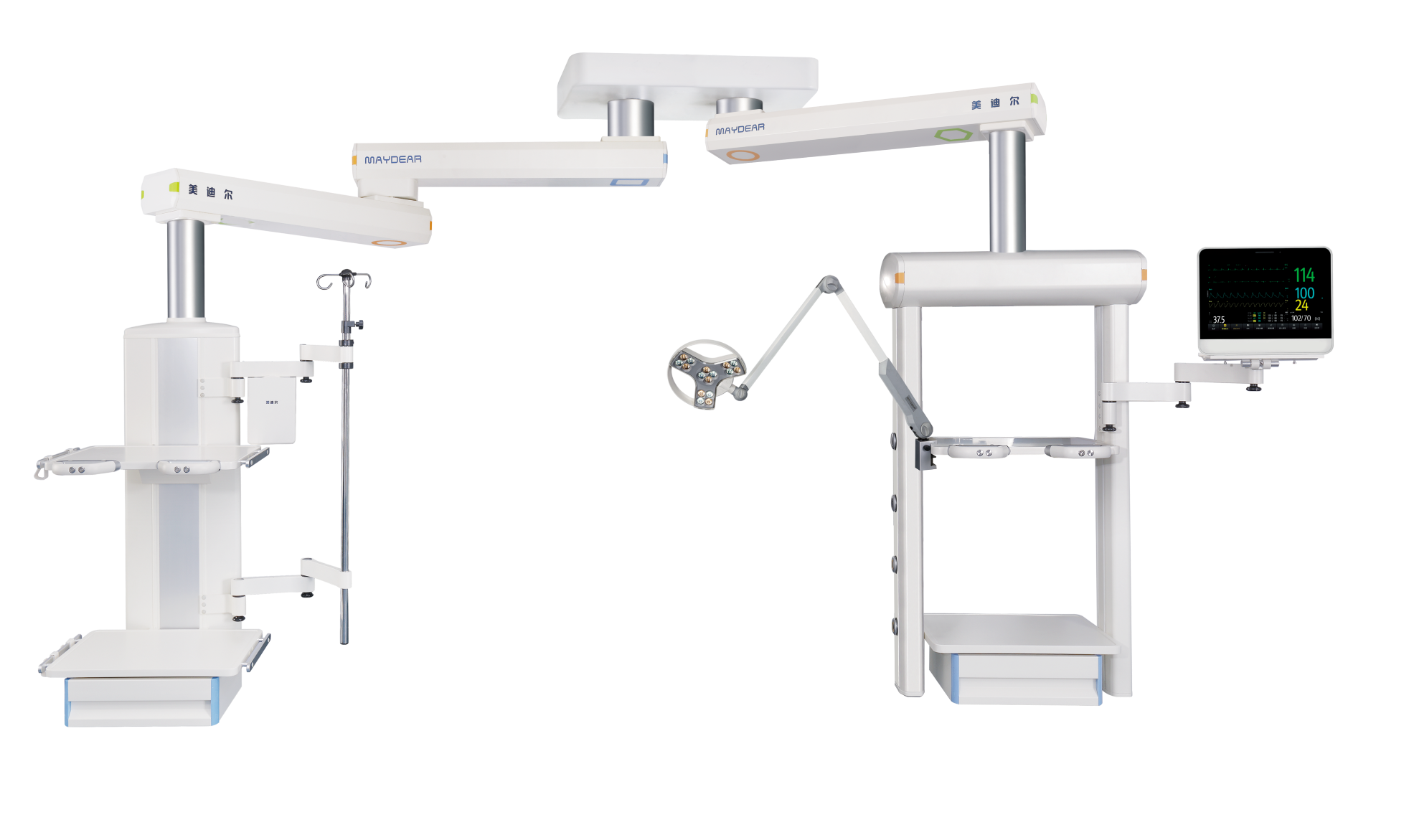 ICU 干濕分離旋臂吊橋 適用于醫(yī)院ICU病房,是現(xiàn)代重癥監(jiān)護病房必備的醫(yī)療搶救輔助設備,主要由橋架,干段和濕段組成。其特點在于合理的干濕分離結構,濕段配置升降靈活的輸液架和輸液泵架。干濕段配置有可升降調(diào)節(jié)的醫(yī)療監(jiān)護儀器平臺,在干濕段上分別將氧氣,空氣,吸引,強弱電,網(wǎng)絡輸入終端配置在醫(yī)護人員抬手可及的塔體上。濕段采用懸臂結構,提高了治療空間,移動旋轉(zhuǎn)部分采用氣控制動防飄移,桁架中央配置一款環(huán)保,節(jié)能的LED照明治療。為臨床治療提供了照明解決方案,另外還可根據(jù)您的要求選配通信傳呼,監(jiān)控,可視電話